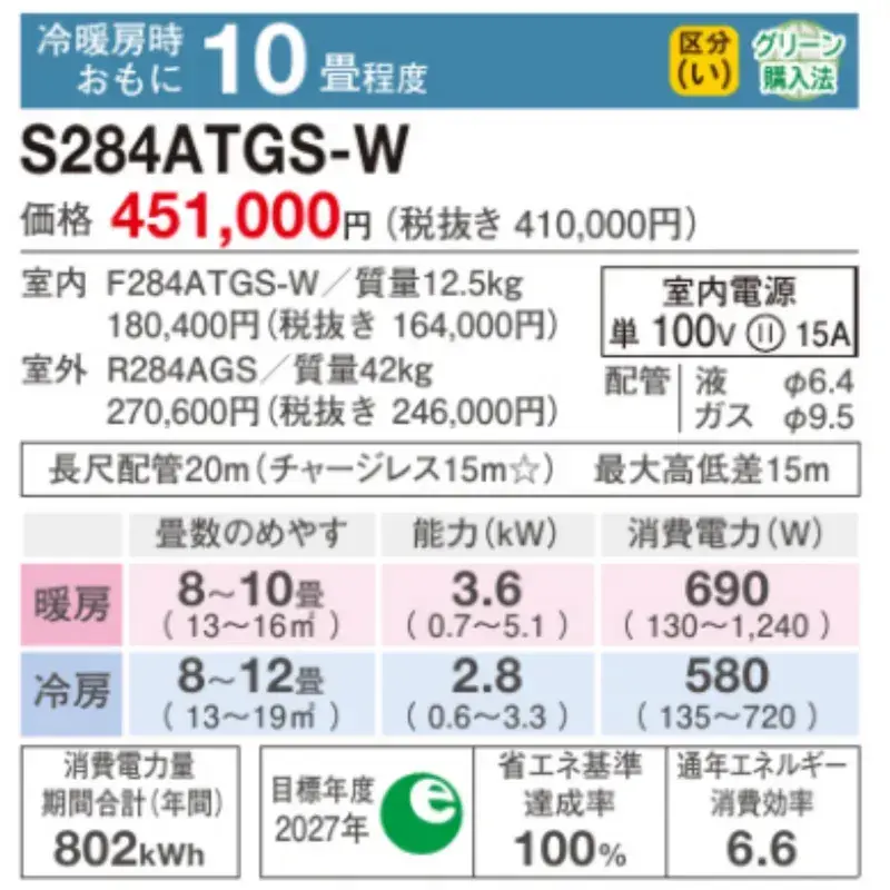 ダイキン|GXシリーズ|2.8kwエアコン|10畳用|S284ATGS